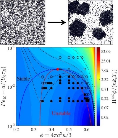 Figure 1: Athermal phase separation of active matter. (Adapted from Takatori & Brady PRE (2015).)