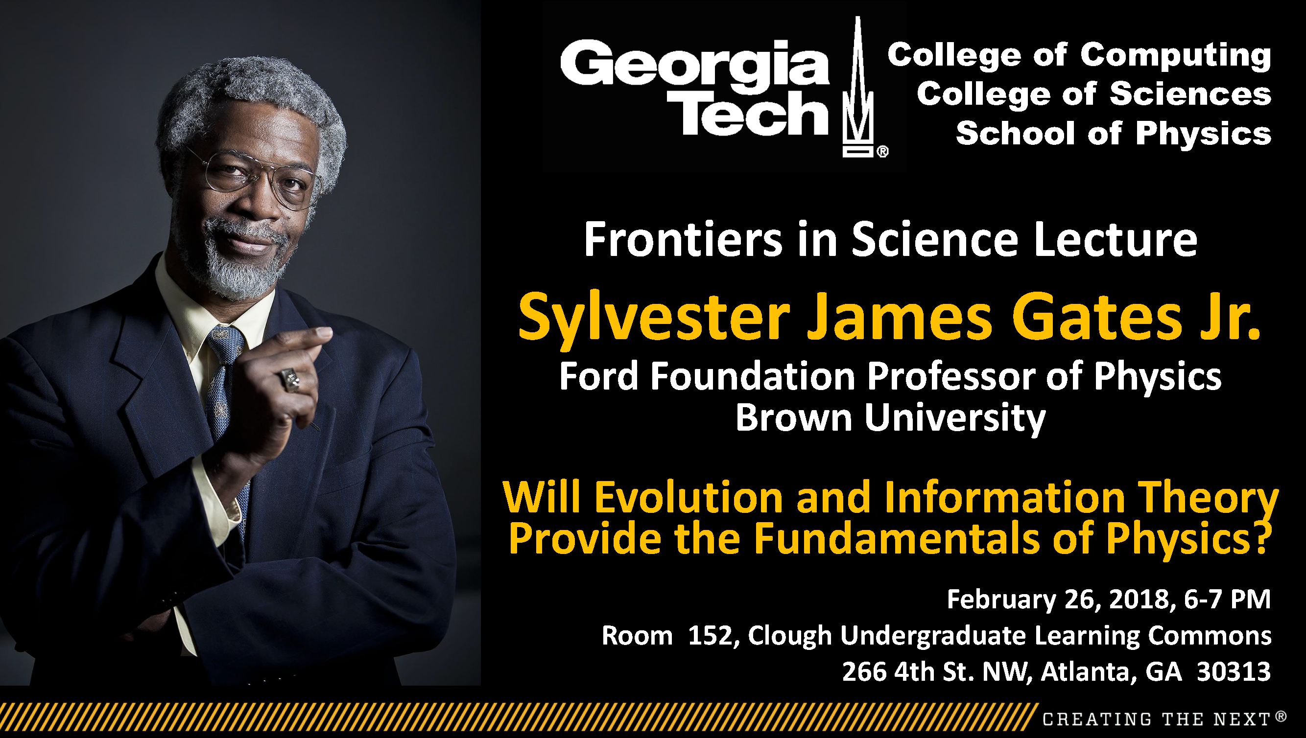 Professor Gates was appointed Ford Foundation Professor of Physics at Brown in 2017, and also holds an appointment in the Department of Mathematics. He first joined the Brown community in fall 2016, as an inaugural Provost Visiting Professor. Prior to this, he was Distinguished University Professor, University Regents Professor, John H. Toll Professor of Physics and Director of the Center for Particle and String Theory at the University of Maryland. Gates was awarded the 2011 National Medal of Science, is a member of the National Academy of Sciences, the American Academy of Arts and Sciences, the American Philosophical Society, and is a fellow of both the American Association for the Advancement of Science and the American Physical Society. He served on the Maryland State Board of Education and was a member of the President’s Council of Advisors on Science and Technology (PCAST). As a member of the PCAST, he was co-chair of its working group on STEM preeminence for the nation and co-authored a report to the President: ”Prepare and Inspire K-12 Education in Science, Technology, Engineering and Math (STEM) for America’s Future.”