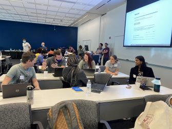 Since 2017, the annual Quantitative Biosciences Hands-On Modeling Workshop has introduced students and faculty of all skill levels and backgrounds to the use of computational modeling in studying biological systems. This summer, attendees and organizers gathered for the workshop in person for the first time since 2019.