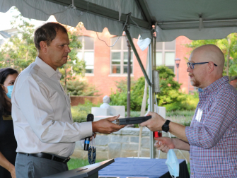 The September Sciences Celebration, staged outdoors at Harrison Square on September 9, 2021 by the College of Sciences Office of the Dean, welcomed new faculty and presented 2020-2021 awards to a number of faculty and a fourth year student in the School of Mathematics.