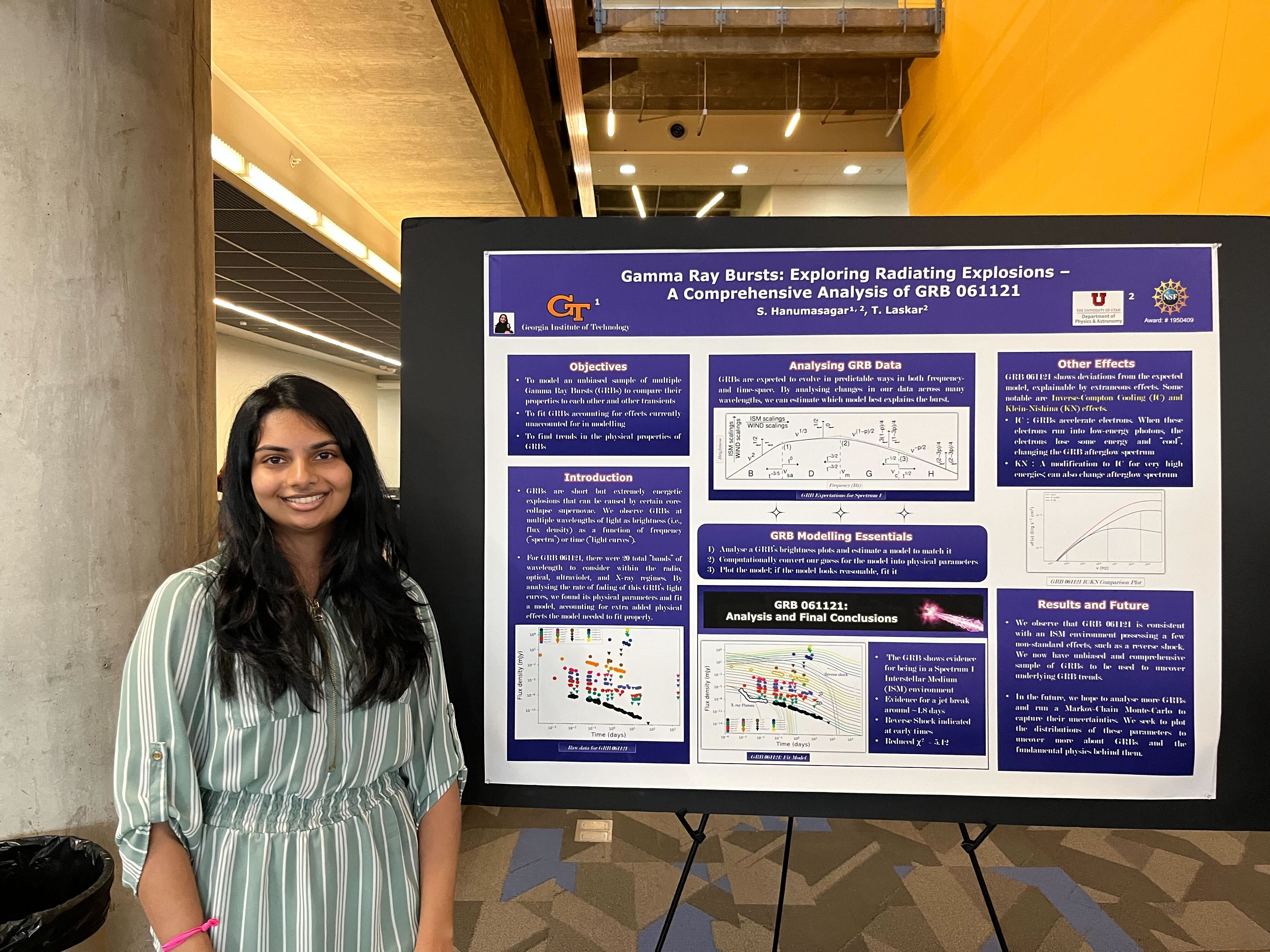 In pursuit of being a completionist and wanting to “collect them all,” Hanumasagar said, she started applying to university research opportunities for the summer. She found the University of Utah’s Tanmoy Laskar, who specializes in astrological phenomena like gamma ray bursts. “Together, we found more information about gamma ray bursts than had ever been done before.”
