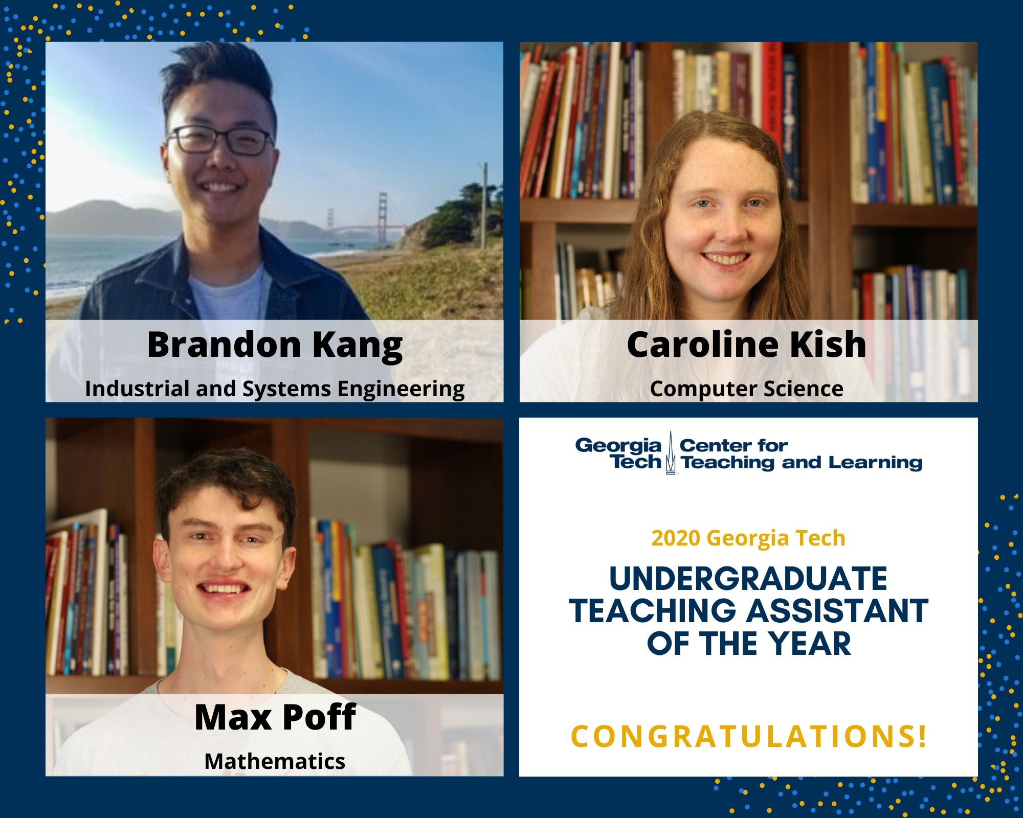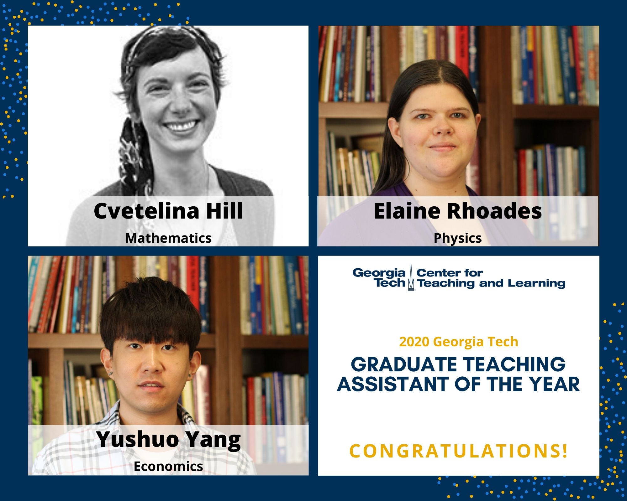 “As I reviewed the nomination packets for the awards, I was impressed by the quality of teaching that our TAs bring to Georgia Tech students,” said Joyce Weinsheimer, director of CTL. “Our TAs want students to learn, and they bring both vitality and commitment to their teaching. The results are noteworthy!"