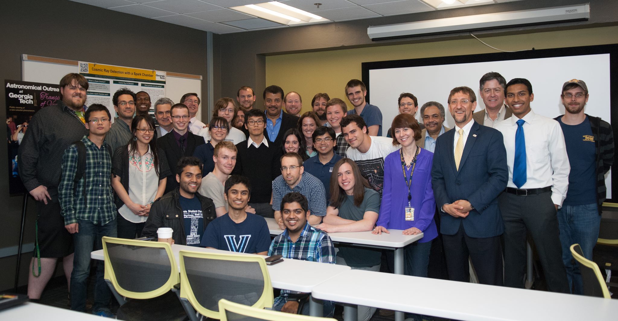 “Just after I received my Ph.D., my collaborators and I worked with the Hayden Planetarium at the American National History Museum to produce a planetarium show segment from my simulations of the first stars,” Wise recalls. The show segment, Journey to the Stars, premiered in 2009 and was narrated by Whoopie Goldberg. Georgia Tech also hosted Tyson in 2014 at the Ferst Center, where many members of the Center for Relativistic Astrophysics met with him.