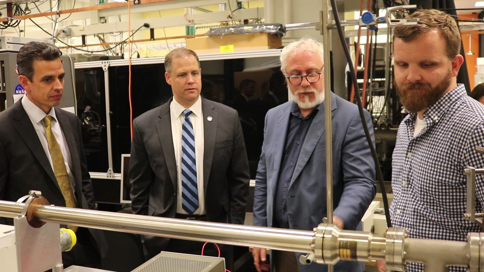 “These efforts will mitigate health risks,” Orlando said. “Bridenstine and Graves were able to see the prototype detectors, the polymers and [their] antistatic properties, as well as the novel table-top accelerator we will use to test these. These efforts are very important to NASA's ARTEMIS program, which plans to sends humans to the Moon by 2024.”